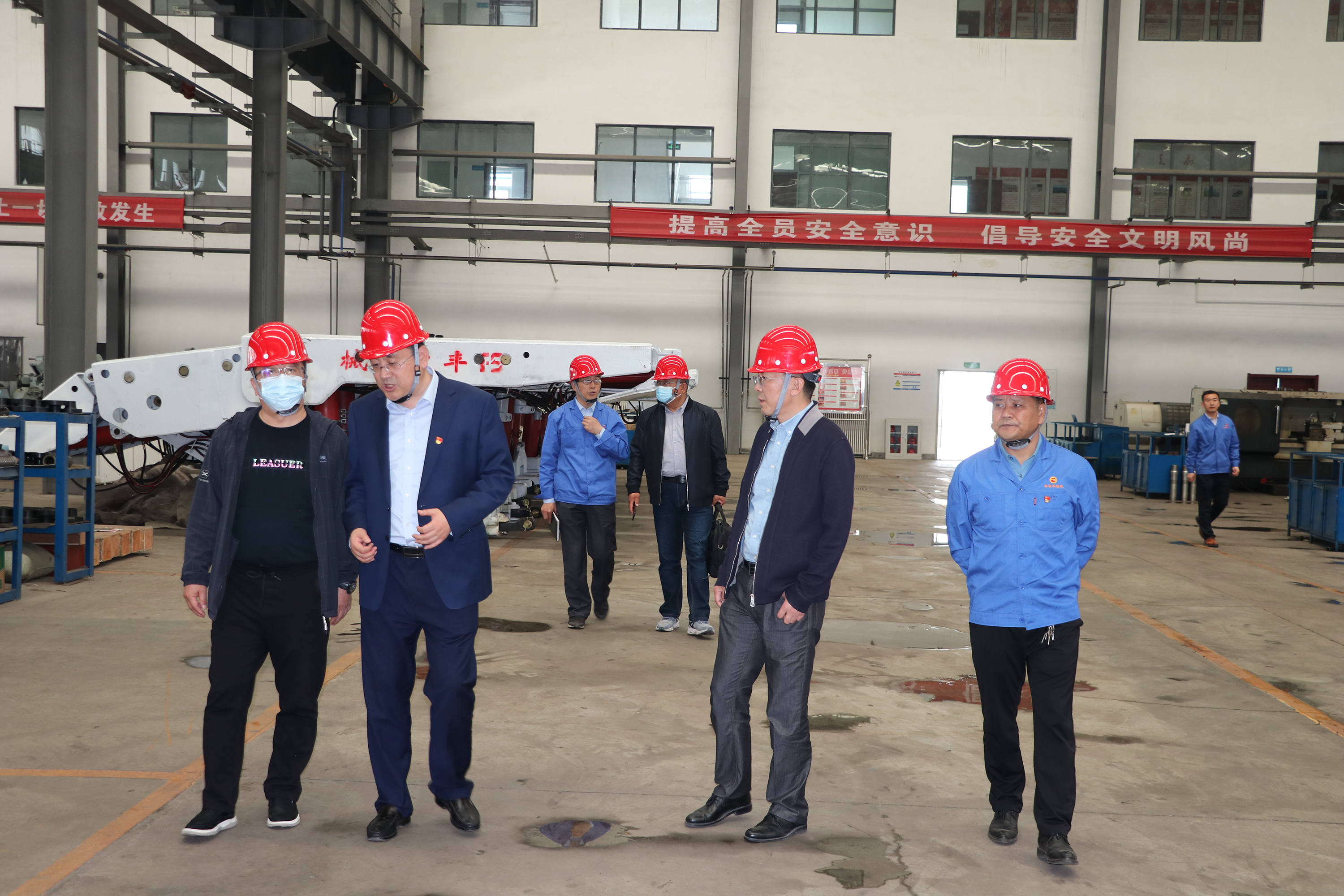 2022-05-195月19日,副市長齊鵬陪同甘肅電氣裝備集團有限公司黨委書記、董事長張志明一行來泓盛達公司考察指導(dǎo)工作,市工信局、市產(chǎn)投集團主要領(lǐng)導(dǎo)參加考察活動??疾旖M一行深入泓盛達公司,現(xiàn)場觀摩了一線生產(chǎn)車間及立體停車樣庫,泓盛達公司負責(zé)人詳細介紹了公司基本情況、生