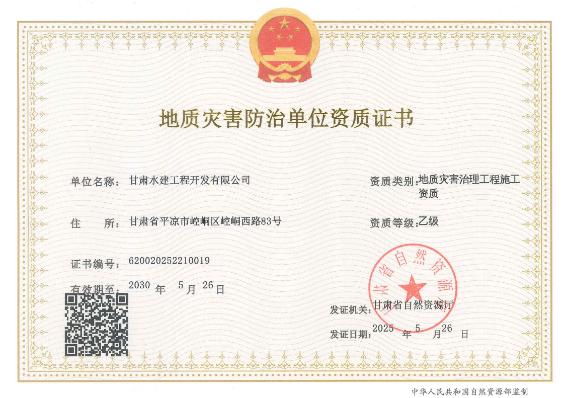 2025-05-28近日,市產(chǎn)投集團水建公司成功獲批地質災害治理工程施工資質!這是繼市政、建筑、勞務等資質后,公司在資質建設領域的又一重大突破,標志著公司向綜合性工程服務領域邁出堅實一步。水建公司始終踐行“誠信立足、服務社會、科學管理、創(chuàng)新致遠”的發(fā)展戰(zhàn)略,近年來,公司
