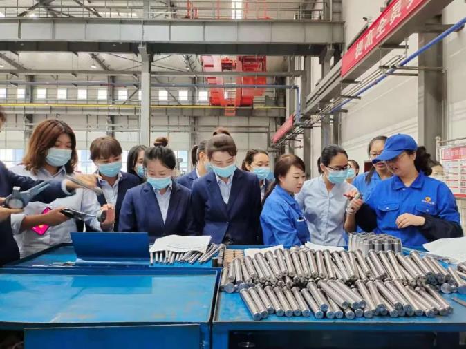 2021-09-018月31日,泓源公司婦委會組織全體女職工赴豐收公司開展“傳承三線精神,學(xué)習(xí)巾幗榜樣”觀摩學(xué)習(xí)活動。本次活動,通過現(xiàn)場觀摩深入了解豐收公司車間一線女職工的工作狀況,并由豐收公司女職工現(xiàn)場實(shí)操,對制造原件取樣、數(shù)控機(jī)床操作、成品檢測檢驗(yàn)等進(jìn)行了演示講解。